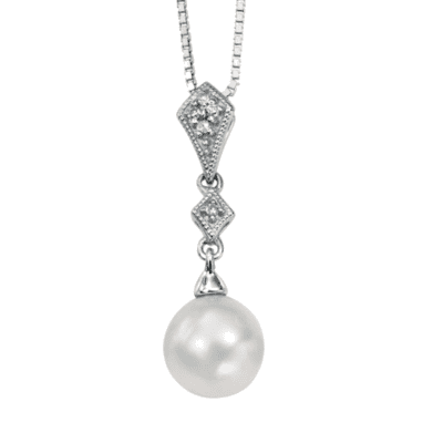 9ct White Gold Freshwater Pearl and Diamond Pendant