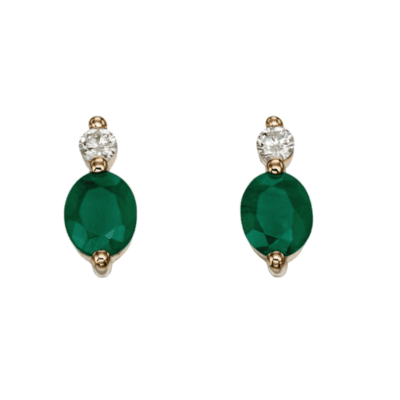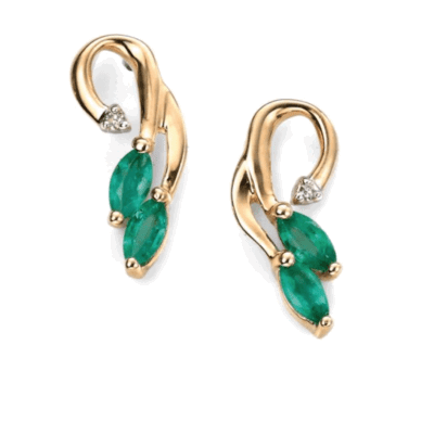 9ct Yellow Gold Emerald and Diamond Vine Style Earrings
