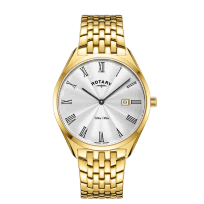 Rotary Gents Watch on Gold-plated Bracelet (Silver white dial)