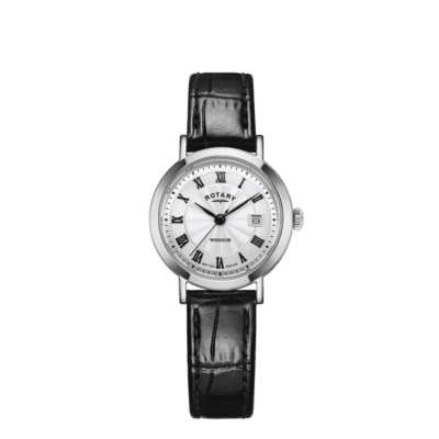 Rotary Windsor Ladies Watch (White dial, black leather strap)
