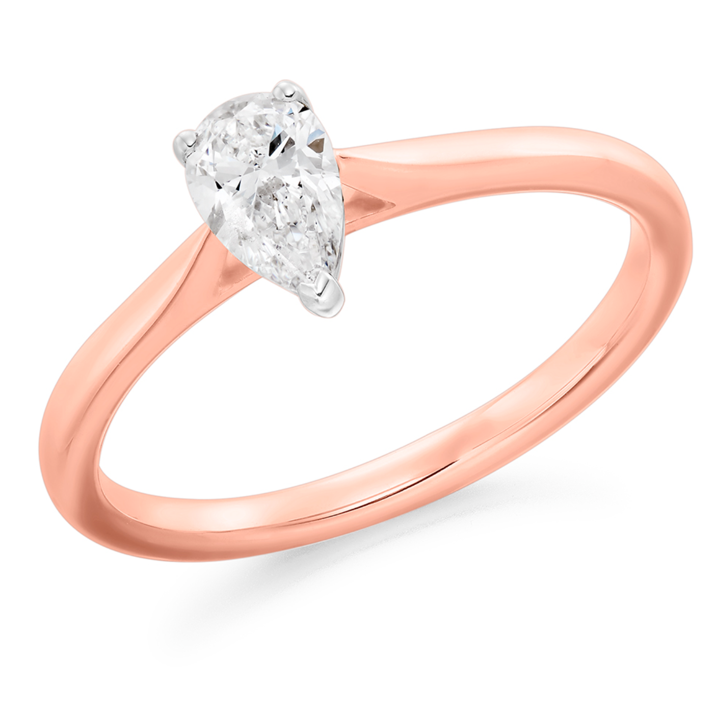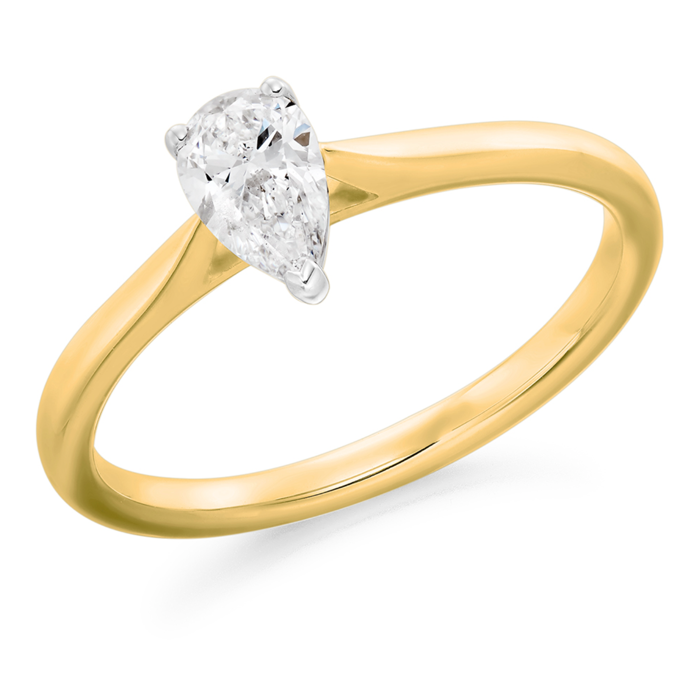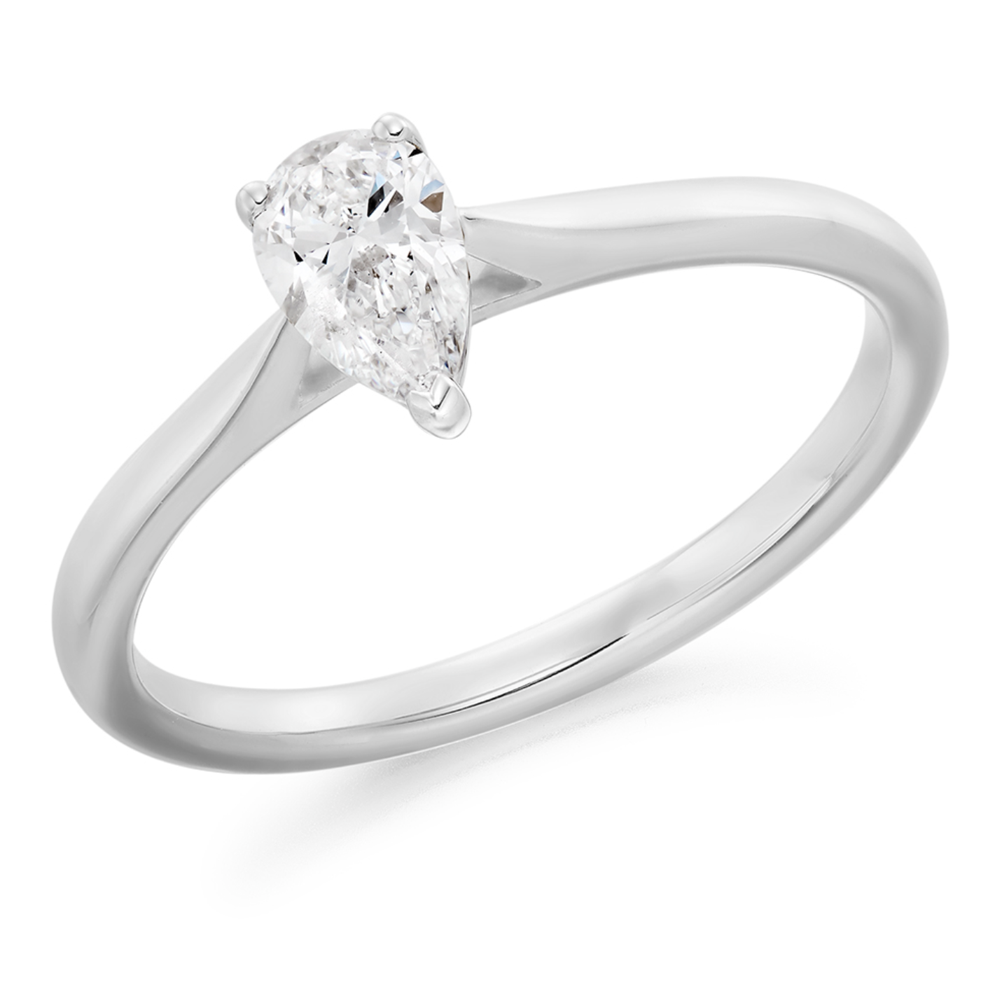 0.40ct Pear cut solitaire single stone engagement ring with plain shoulders. The setting is a 3-claw setting.
