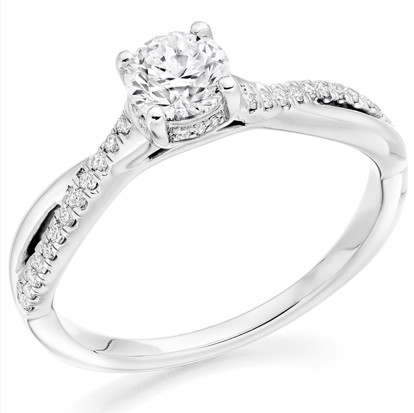 0.65ct Round Brilliant Single Stone with Twisted Diamond Set Split Shoulders