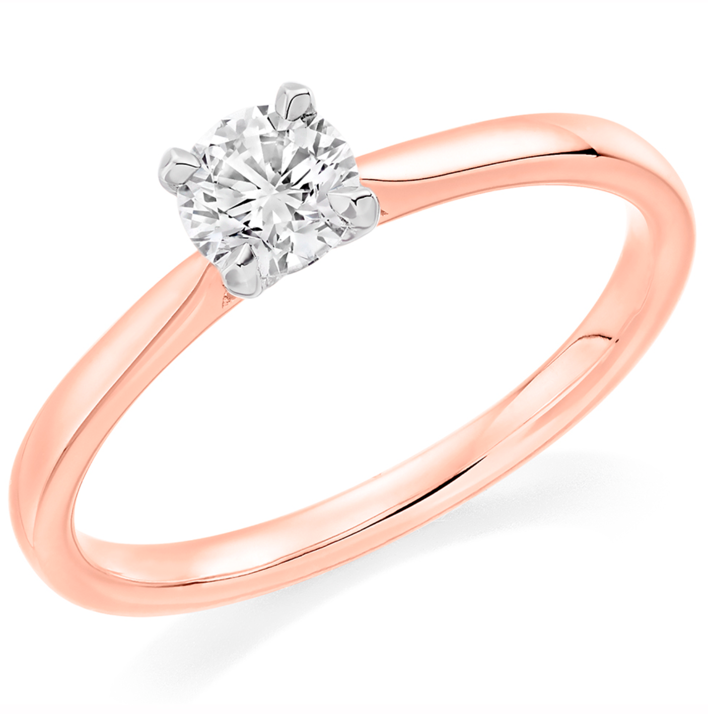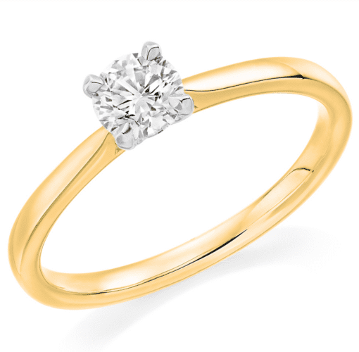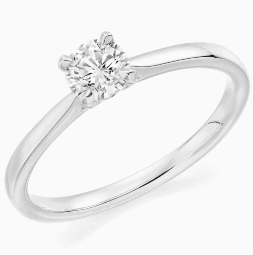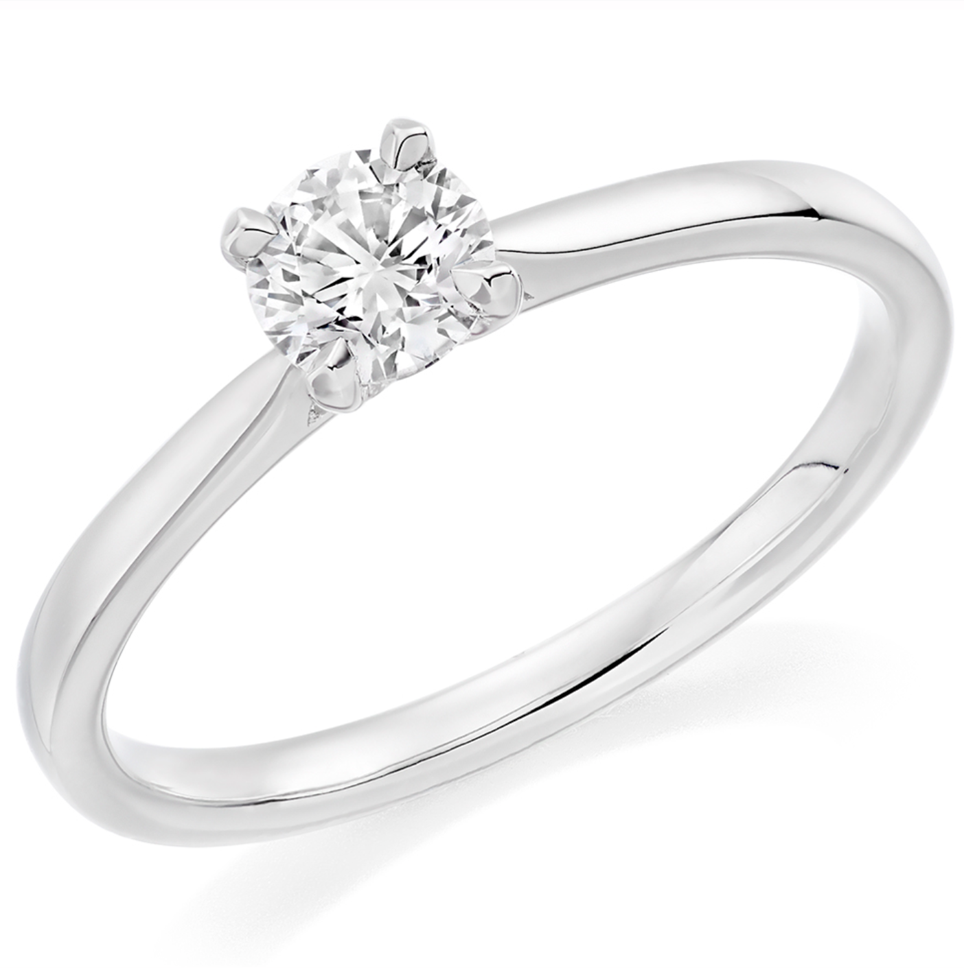 0.75ct round brilliant cut solitaire single stone engagement ring with plain shoulders. The setting is a 4-claw setting.
