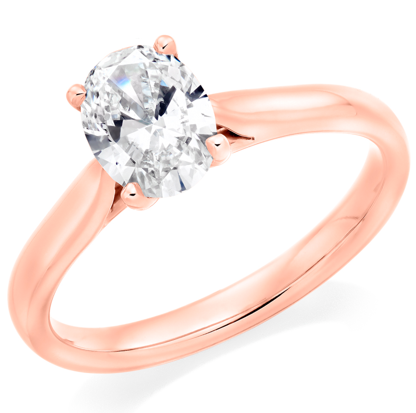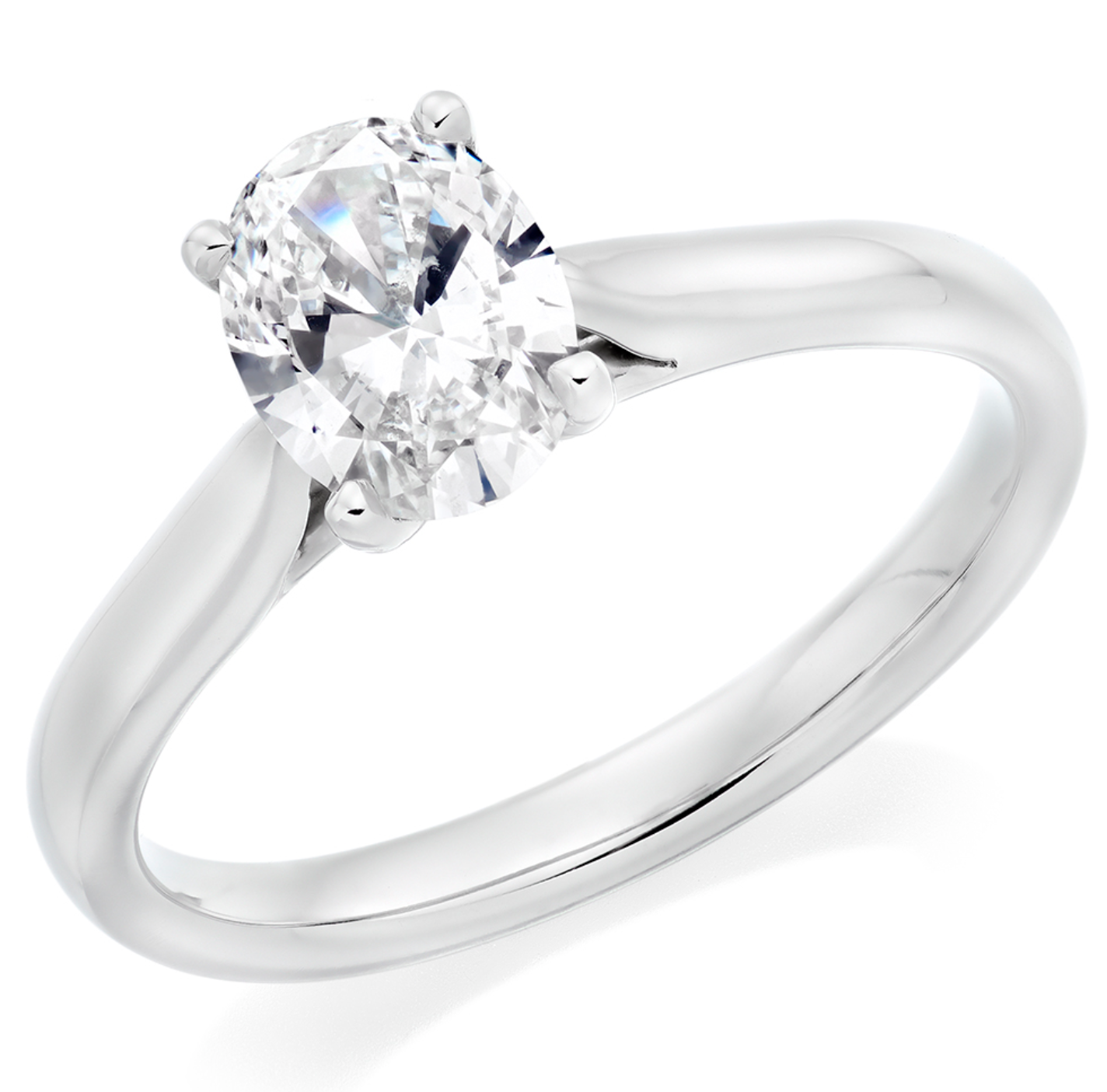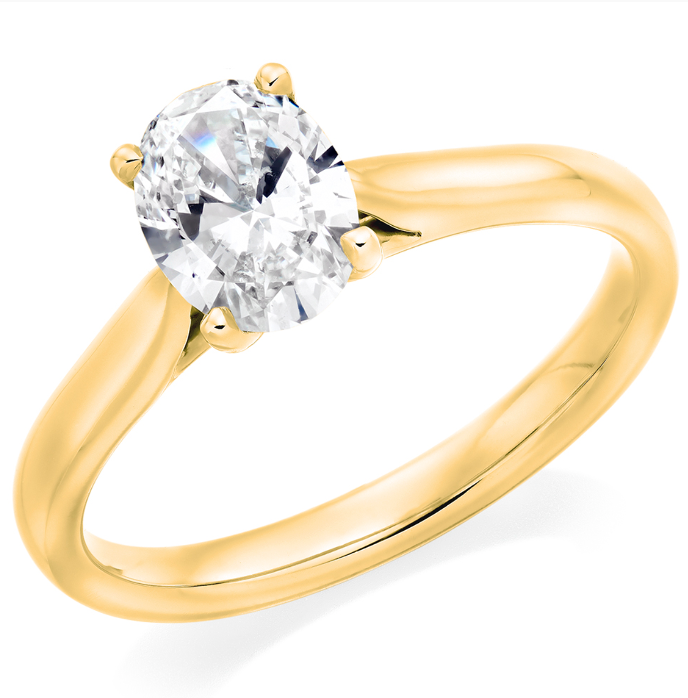 1.00ct Oval cut solitaire single stone engagement ring with plain shoulders. The setting is a 4-claw setting.