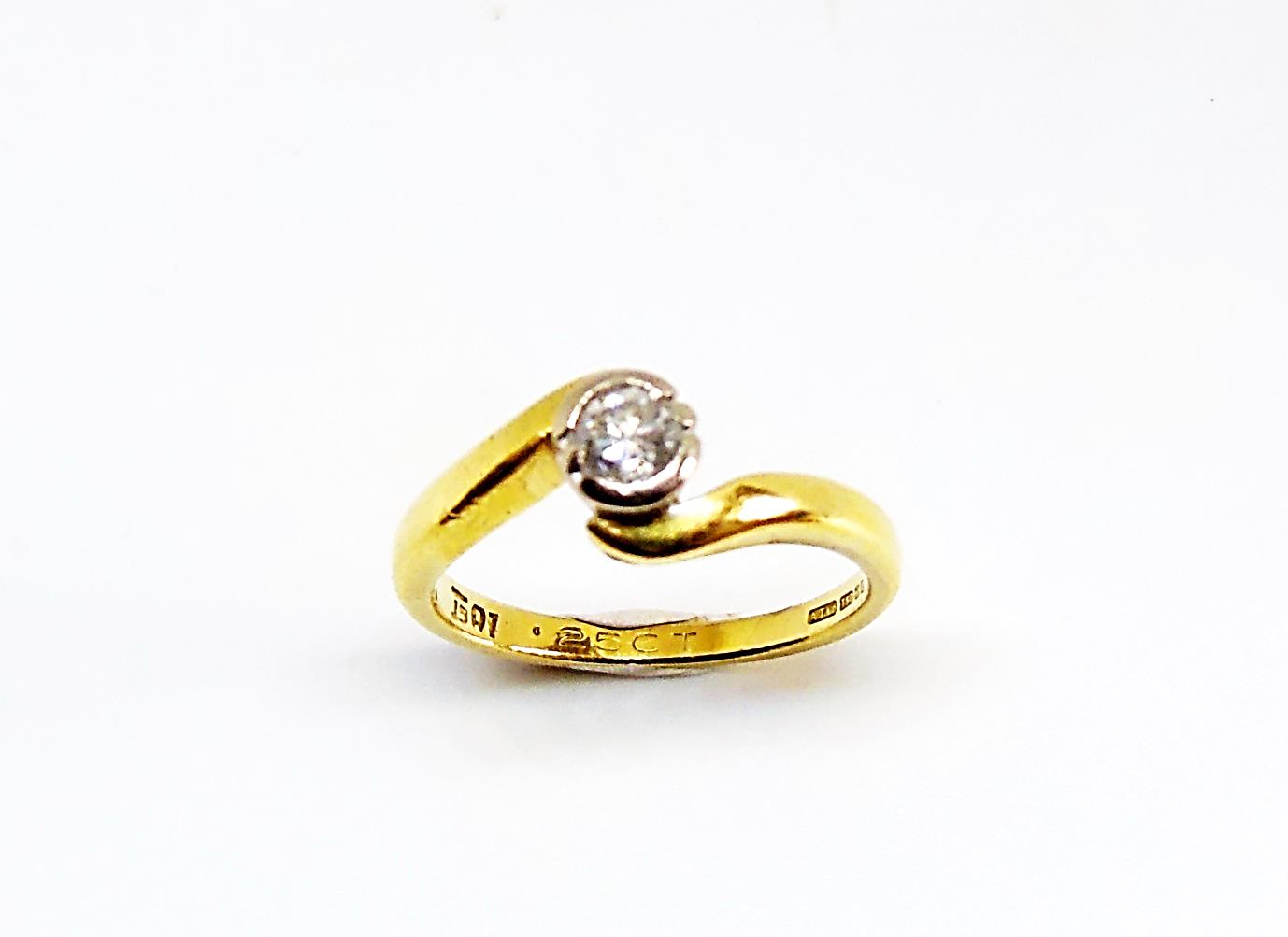 18ct gold solitaire round brilliant-cut cross-over ring, 0.25ct.