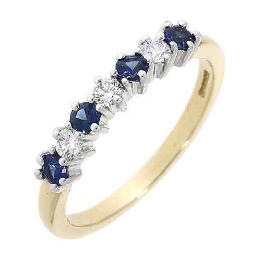 18ct white and yellow gold seven stone claw-set sapphire and diamond eternity ring. D 0.15ct S 0.26ct.