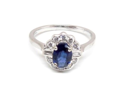 18ct white gold sapphire and diamond cluster ring.