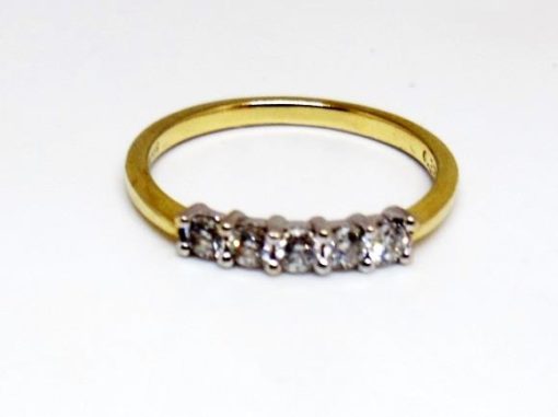 | 18ct yellow and white gold and diamond five stone ring, all round brilliant cut and four claw-set, total diamond weight 0.33 carats. |