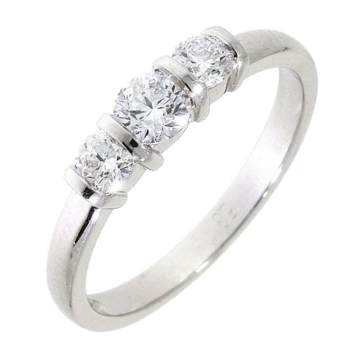 18ct white gold and diamond bar-set Trinity ring, 0.51cts.