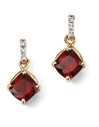 9ct yellow gold garnet and diamond drop earrings