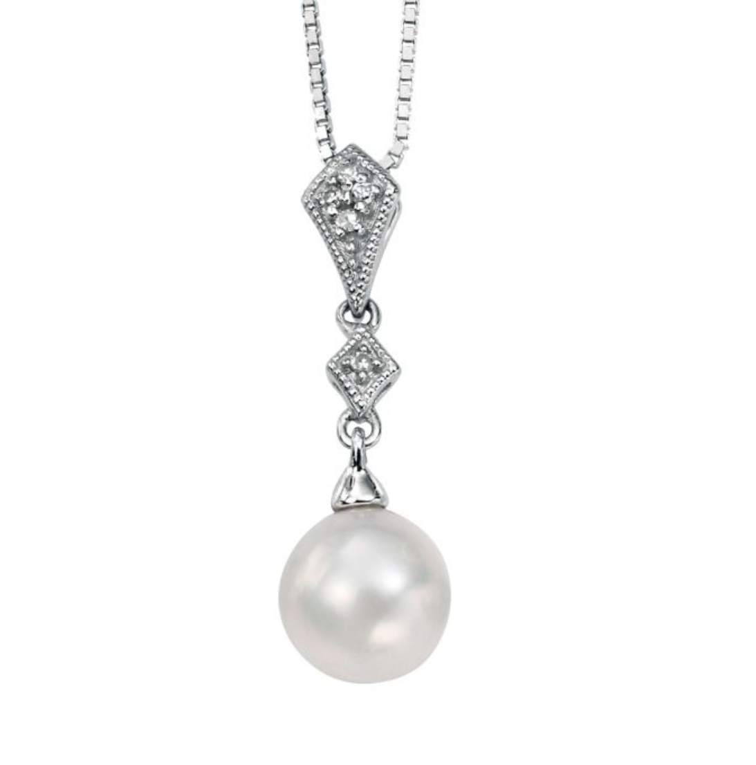 9ct white gold diamond and freshwater pearl pendant on chain