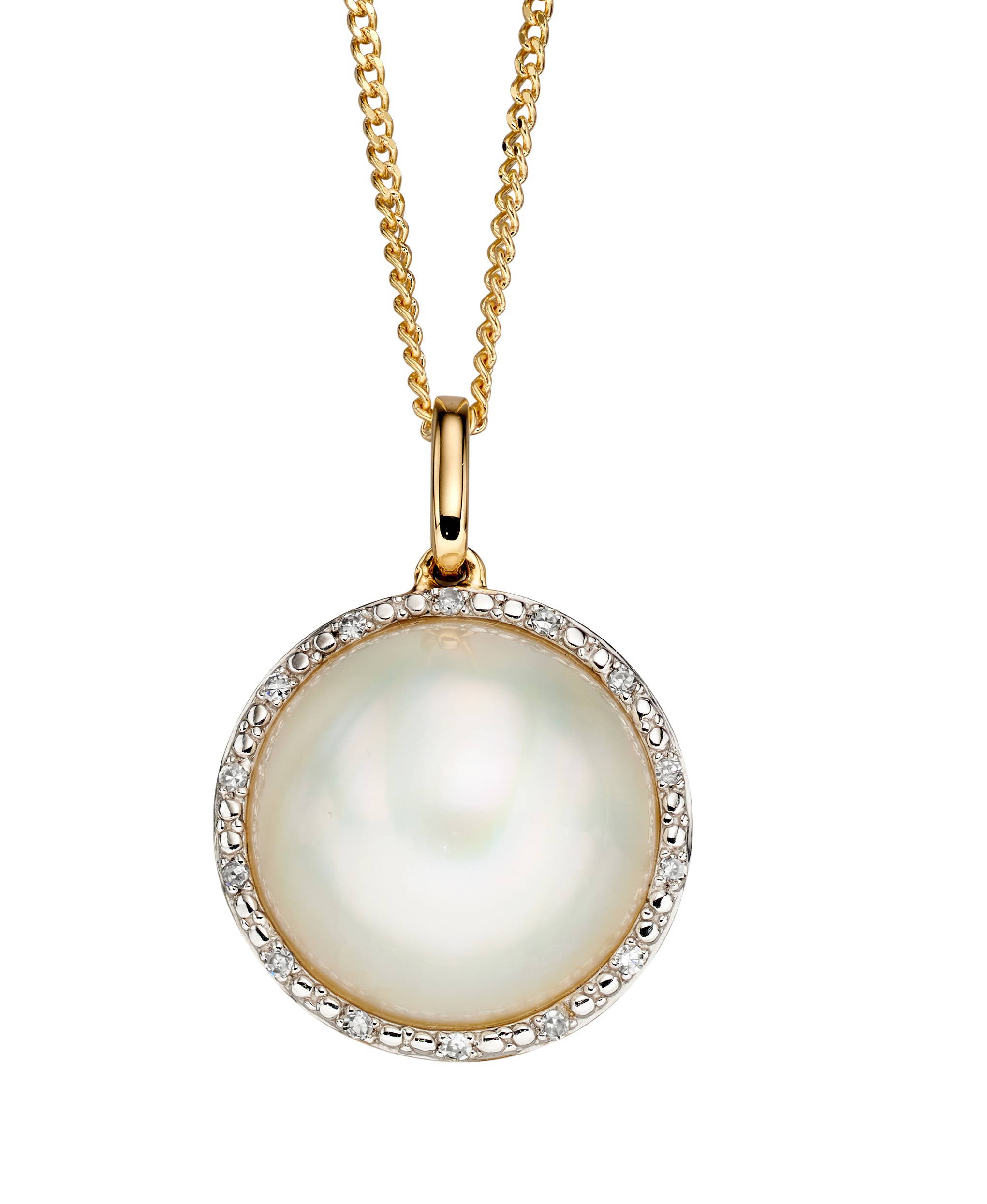 9ct yellow Gold Mabe Pearl and Diamond Pendant