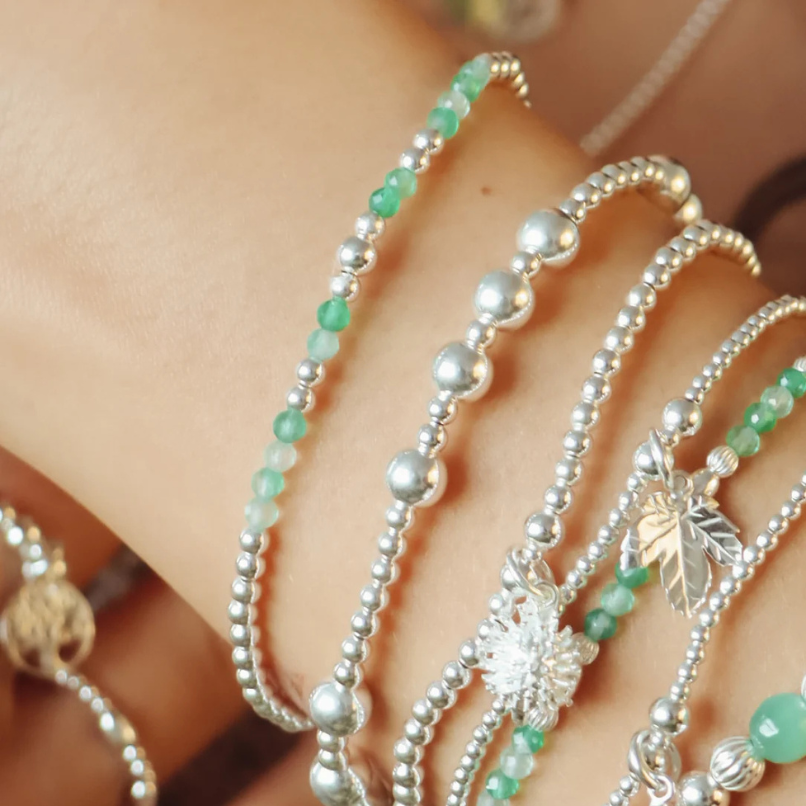 Feel fresh and add some green to your collection with our beautifully handmade Ceder Bead Bracelet. It's the perfect accessory for those looking to add a touch of nature to their style. Handcrafted with care, this bracelet is a must-have for any fashion lover! Beautifully crafted in sterling silver with 3mm beads. Hand-threaded onto a super strong elastic for a universal fit.