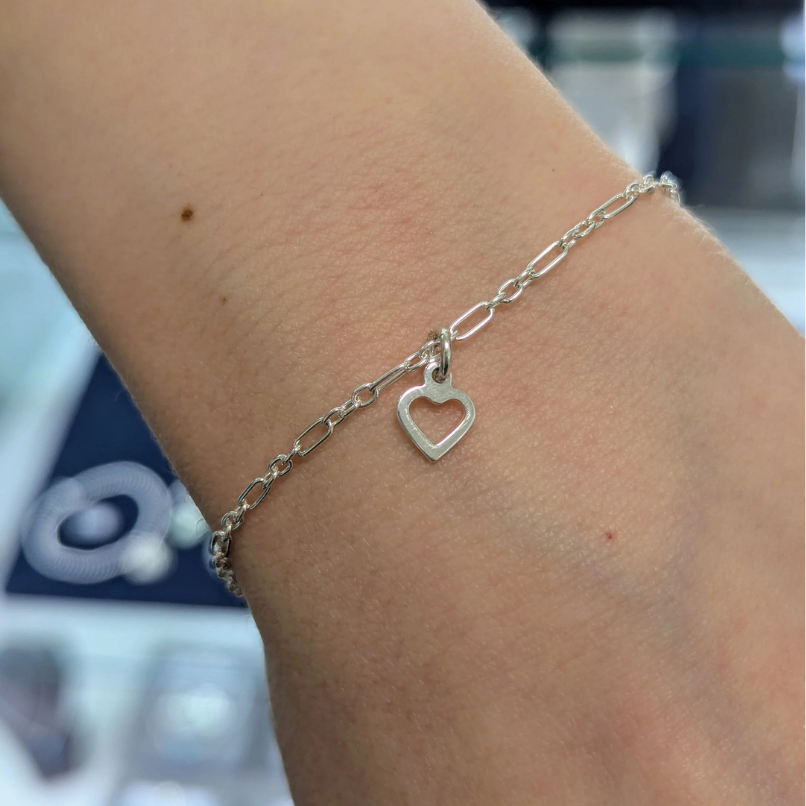 A beautiful, handmade accessory that adds a touch of sweetness to every day wear. This tiny bracelet perfectly complements our Annabelle Open Heart Collection. Treat yourself or your loved ones to this delightful piece! Crafted beautifully in sterling silver, this bracelet is available in 6", 7" and 8" sizes. Handmade in Lincolnshire.