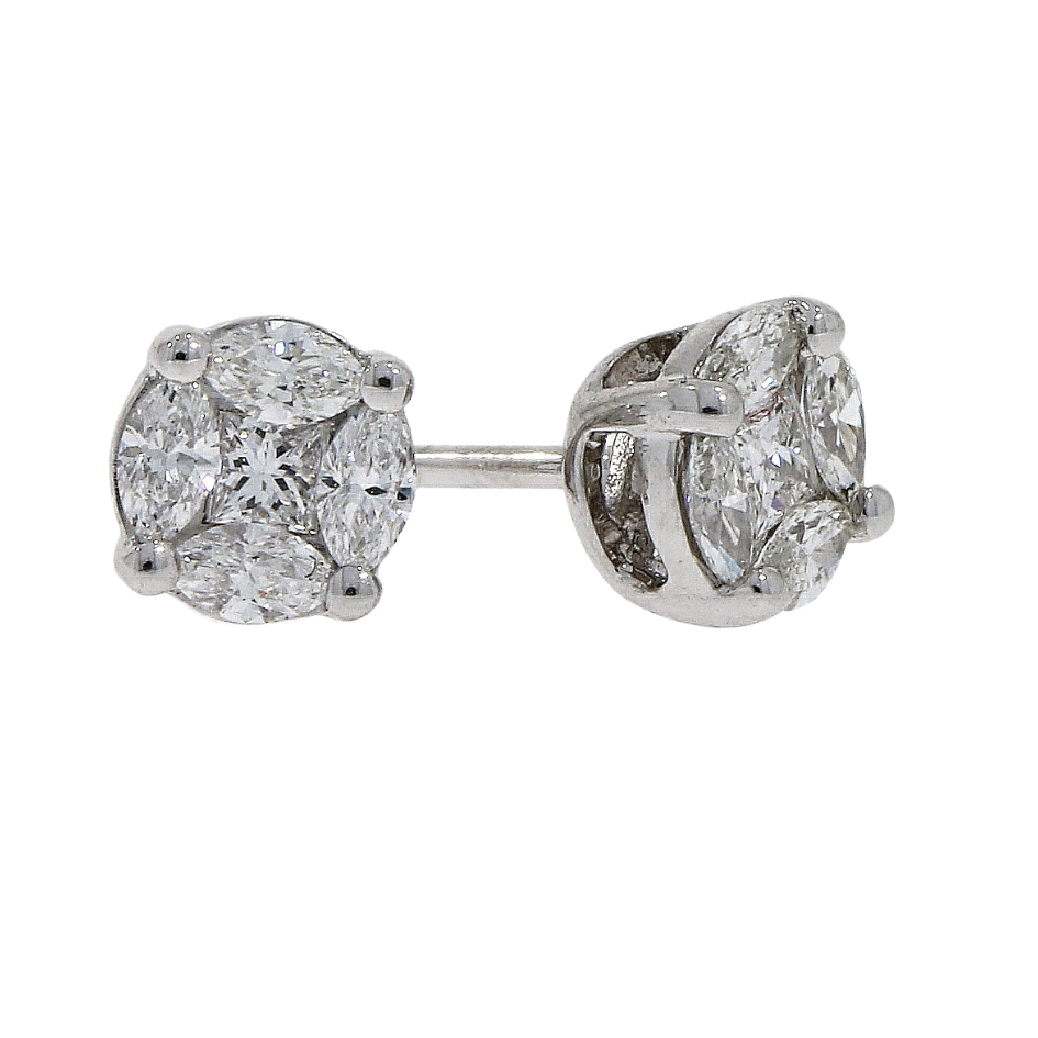 Diamond Princess and Marquise Cut Cluster Earrings