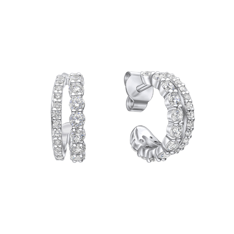 Crafted to perfection in sterling silver with Diamonfire’s signature triple plating, these hoop earrings are a true picture of elegance and brilliance. Each earring boasts a double row of sparkling zirconia stones, creating a captivating play of light and radiance. These hoop earrings are a versatile accessory, suitable for any occasion, whether you’re dressing up for a special event or adding a touch of sophistication to your daily look. Their timeless design ensures they will be cherished for many years to come!