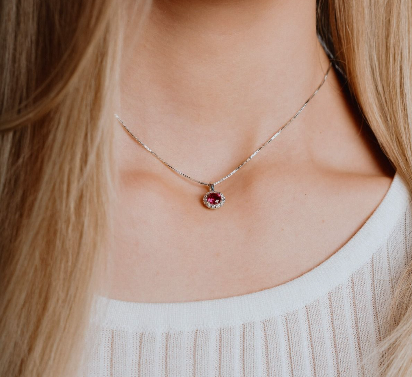 This dazzling round 1.21ct pave pendant with red Diamonfire cubic zirconia is perfect for adding extra sparkle to your outfit.