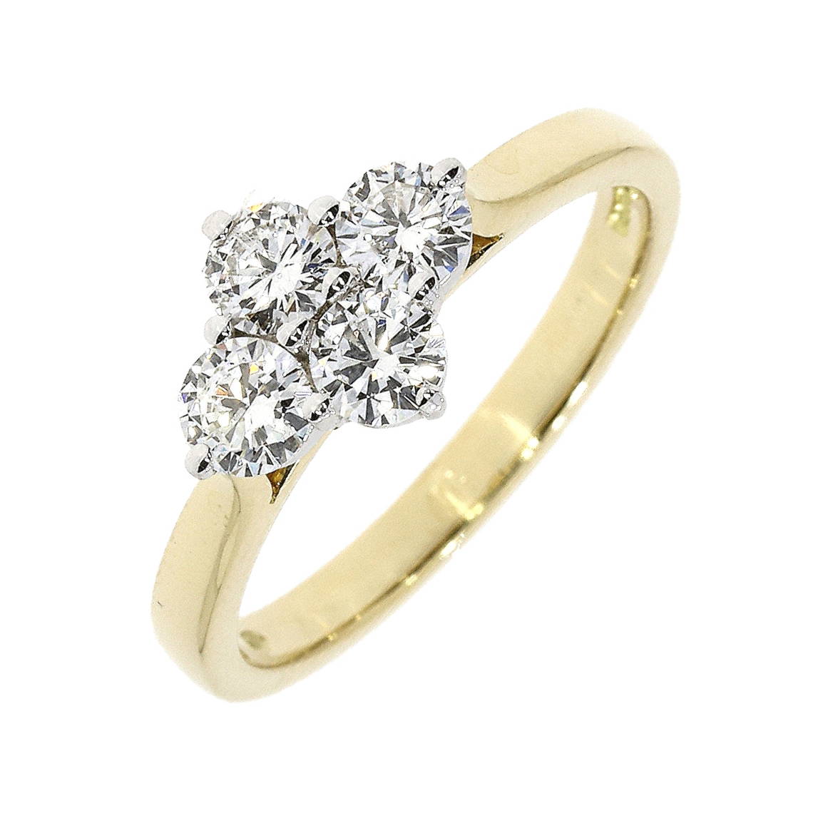 18ct gold four stone diamond cluster ring.  Round brilliant-cut diamonds claw set in white gold with a yellow gold band. Total diamond weight approximately 0.78cts.