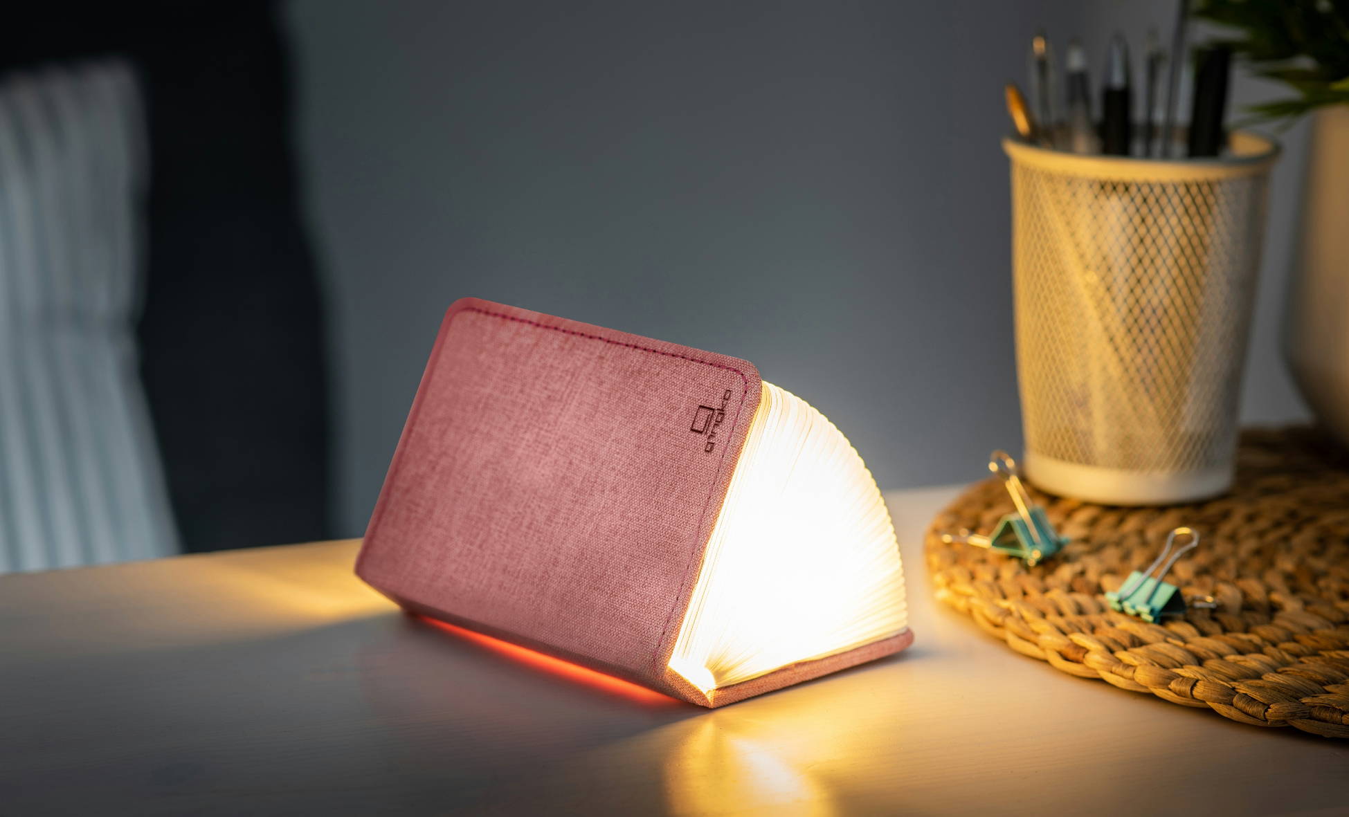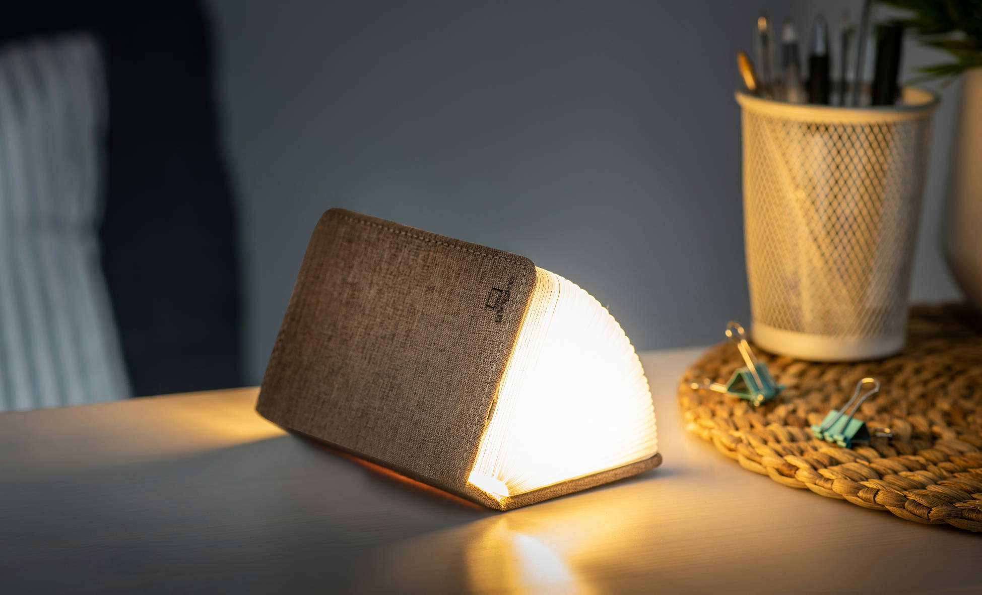 The Linen Fabric smart book light collection is brand new material we added into our smart book light collection and it’s definitely a great additional piece of art to any home; when closed, this smart Book Light masquerades a natural-looking mini or large linen notebook, but when opened It transforms into a sculptural light emitting a wonderful ambient warm white soft LED light through the pages.