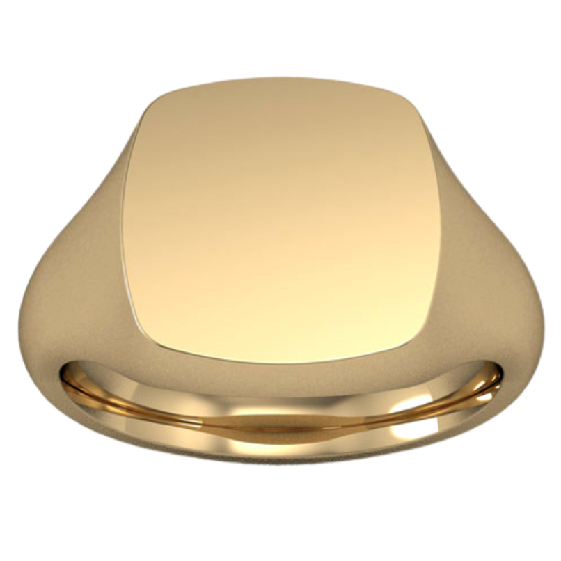 Classic gold cushion shaped signet ring, perfect for seal engraved or hand engraved options. Available in 9ct or 18ct gold, with your choice of yellow, white, or rose gold finishes. Please select a ring size to see prices.