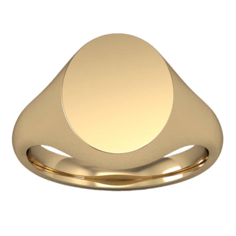Classic gold oval signet ring, perfect for seal engraved or hand engraved options. Available in 9ct or 18ct gold, with your choice of yellow, white, or rose gold finishes. Please select a ring size to see prices.