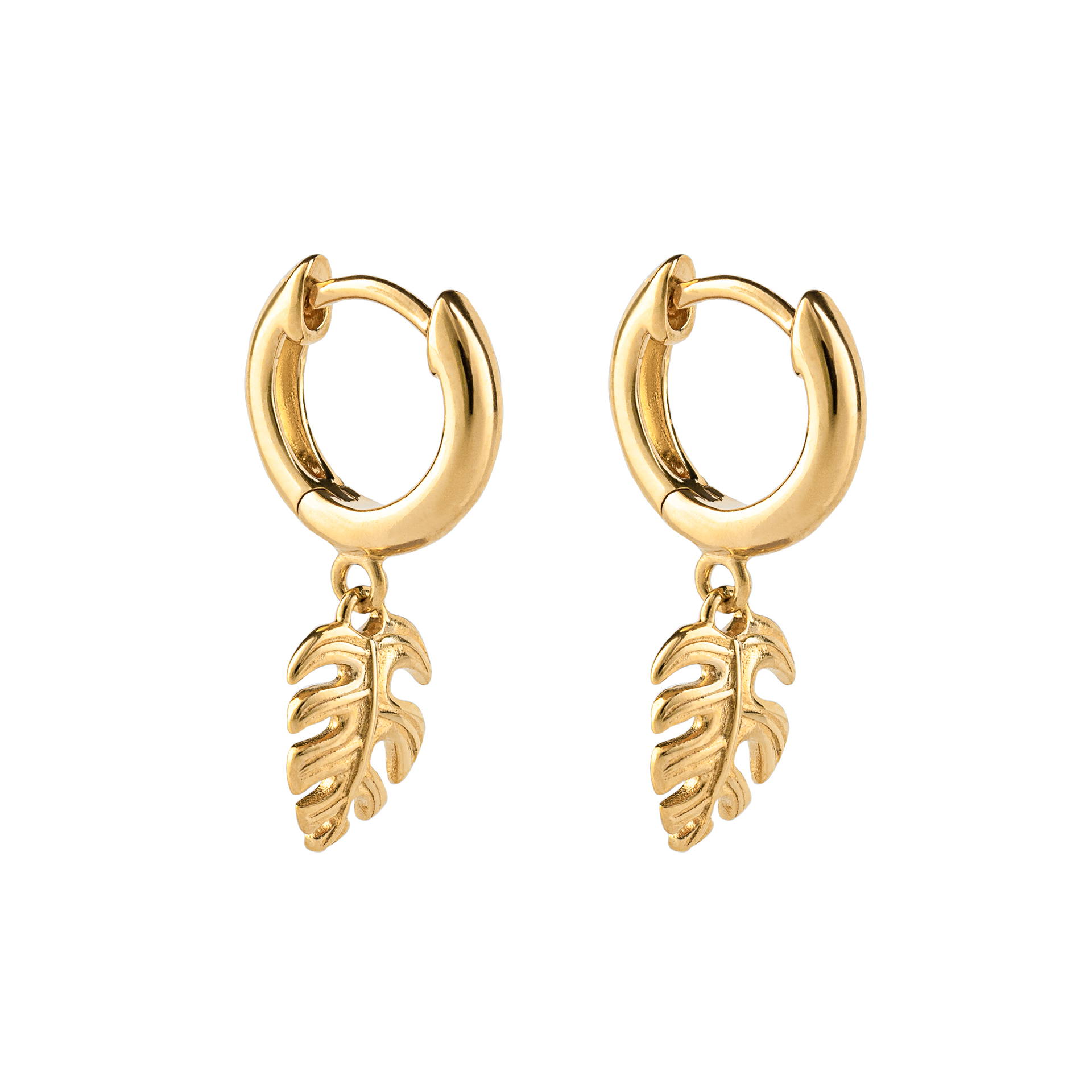 Gold-plated solid silver hoop earrings with palm leaf charm.