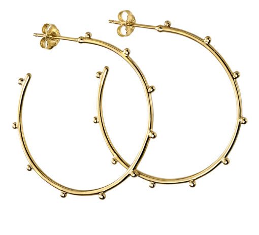 Large Gold-plated solid silver hoop earrings with studded effect.