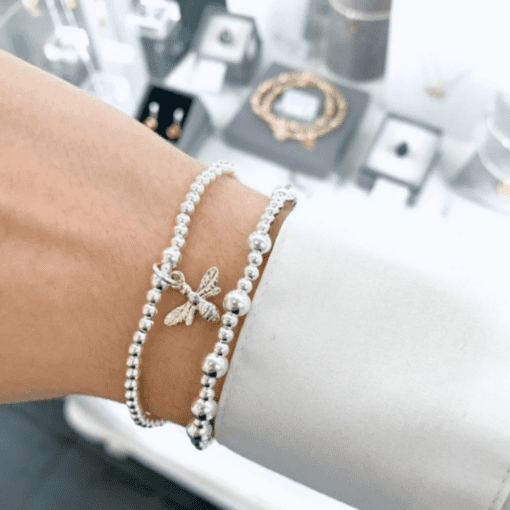 The Honey Bee Silver Bracelet is a buzzworthy accessory that is known to 'bee' a beacon of hope and solidarity! This dollie classic is a best seller, so you know it's the perfect mix of sweet and chic. Get buzzing with this cute creation! Beautifully crafted in sterling silver with beads measuring at 3mm. Hand-threaded onto a super strong elastic for a universal fit. Â Handmade in Lincolnshire.