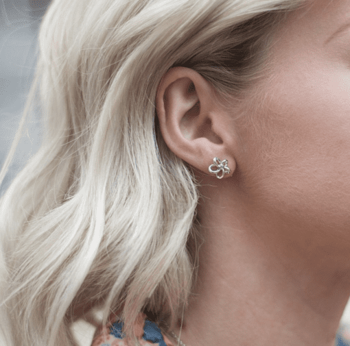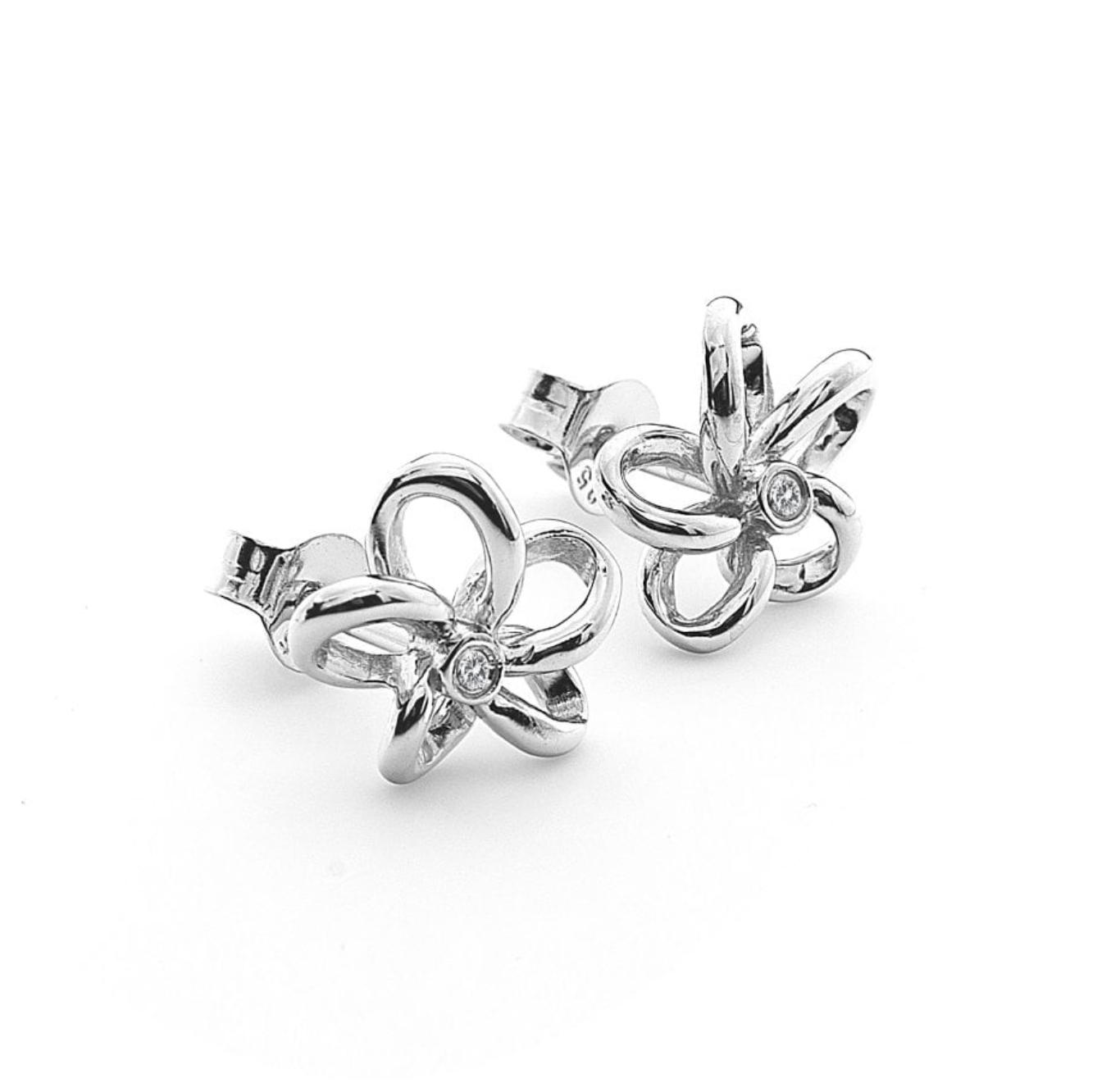 These stunning Natural earrings, measuring 8mm x 8mm, are crafted from 925 sterling silver and are adorned with a beautiful one-point diamond in the centre of the detail.