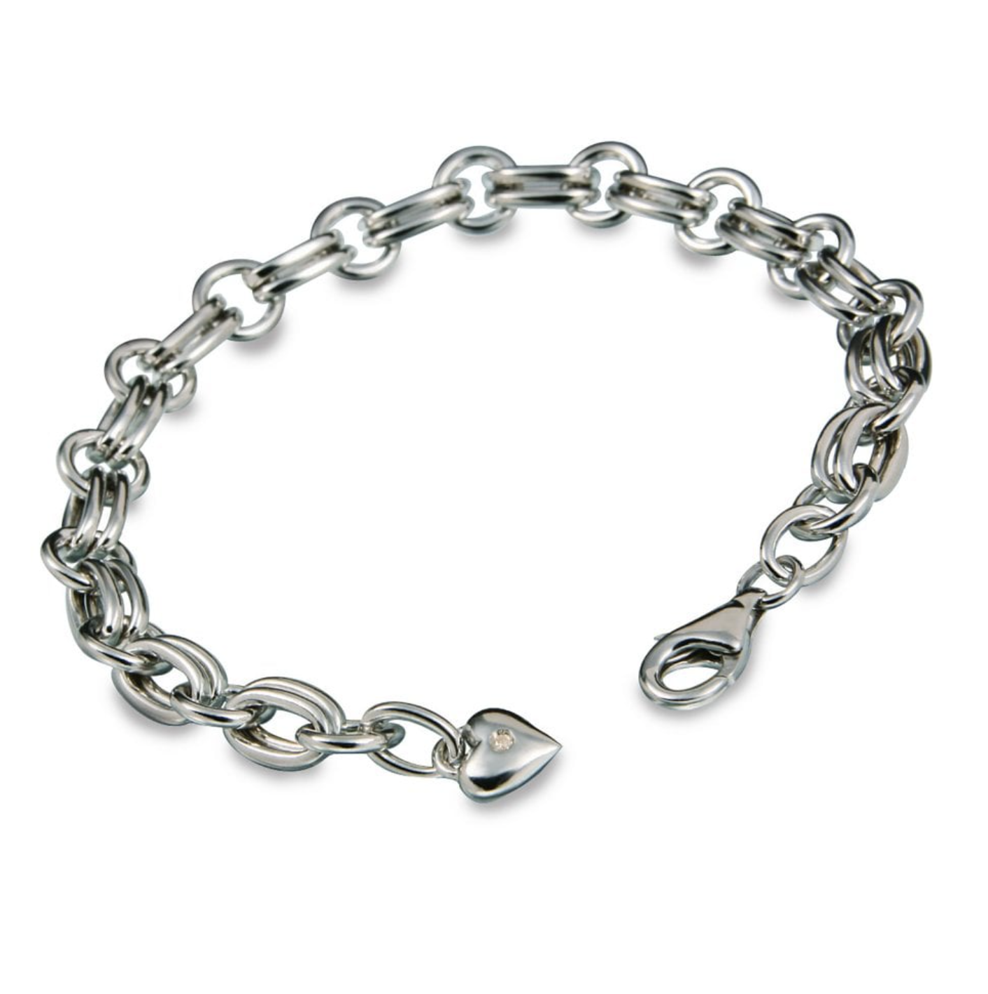 This bracelet is 19.5cm in length and finished with a diamond-set heart.