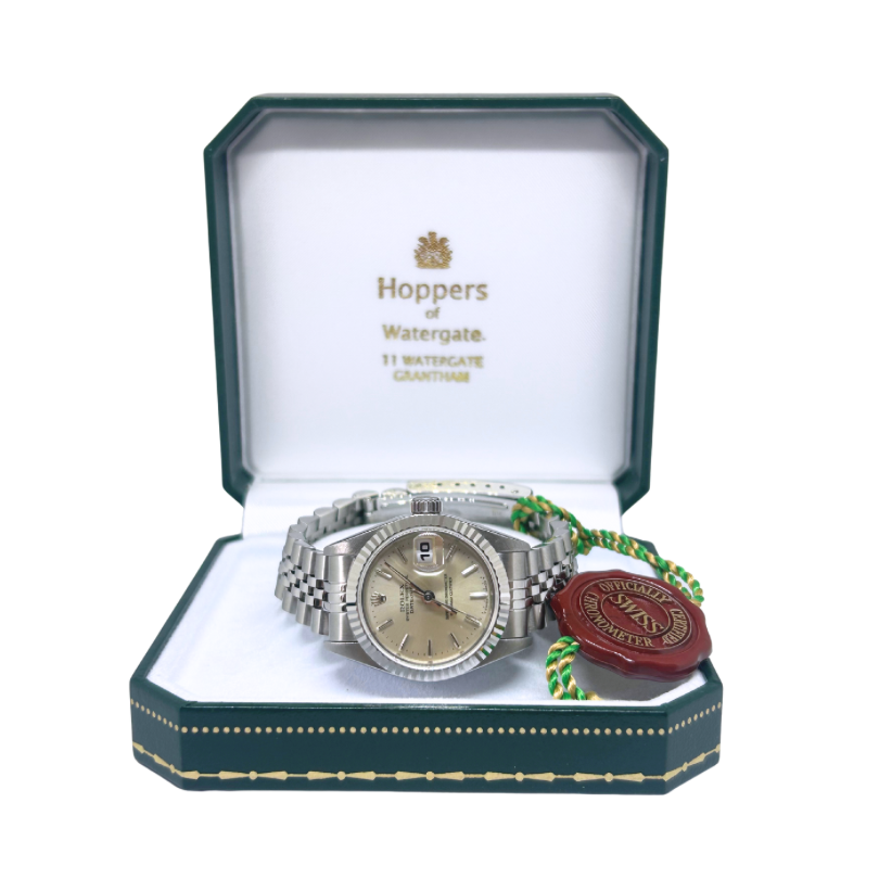 Classic ladies Rolex Datejust watch model No 69174 for 1997. The case size is 26 mm and is water resistant up to 100 meters.