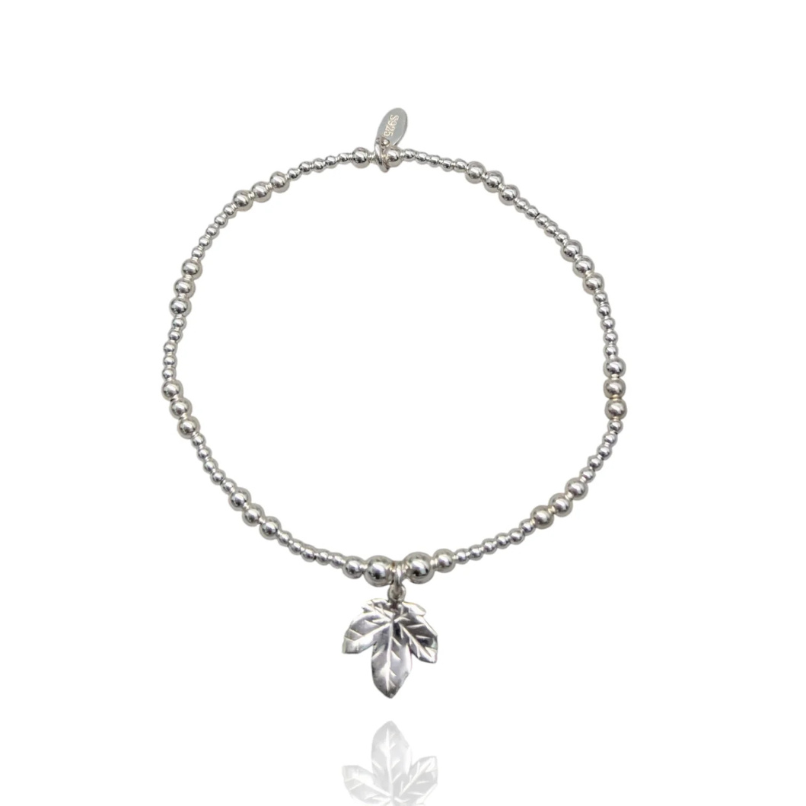 Embrace your love for nature with our Maple Leaf Bracelet. This alternative design is perfect for the playful and quirky nature lover or any Canadian at heart. A cute addition to your jewellery collection! Beautifully crafted in sterling silver with 2mm & 3mm beads. Hand-threaded onto a super strong elastic for a universal fit.