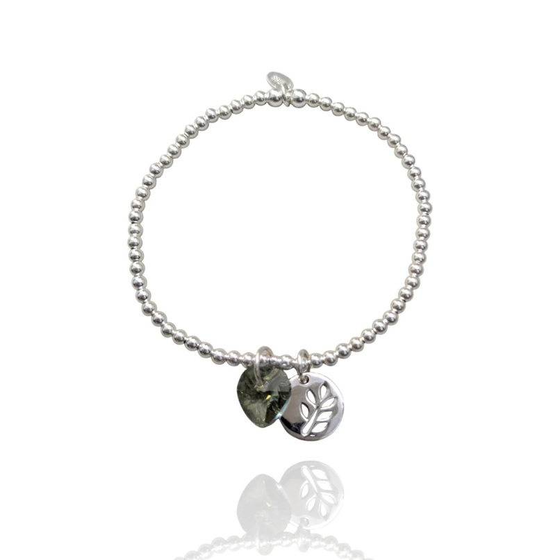 Introducing the Mountain Ash Bracelet – a handmade bracelet featuring a stunning Austrian crystal heart charm and a leaf charm. Perfect for adding a touch of natural elegance to your everyday look. Beautifully crafted in sterling silver with 3mm beads.