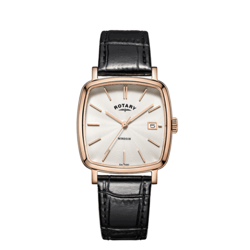 Rotary Windsor Gents Watch with a square dial and a leather strap.