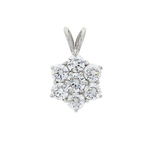 18ct yellow and white gold cluster pendant, featuring seven diamonds on a 18ct yellow gold filed curb chain, 18" long.