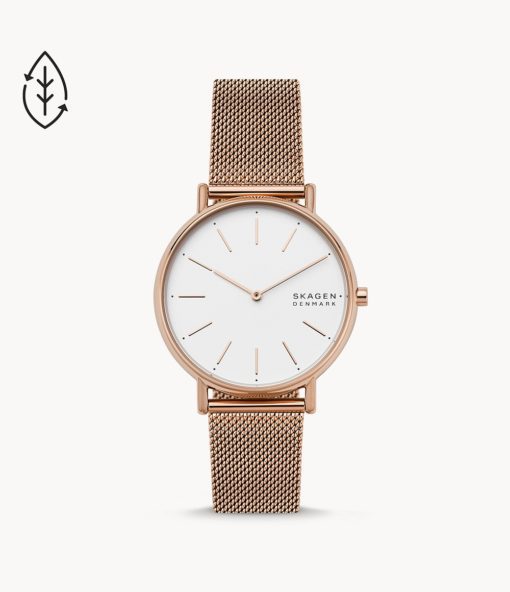 Skagen Signatur Rose-Tone Steel Mesh bracelet Watch.