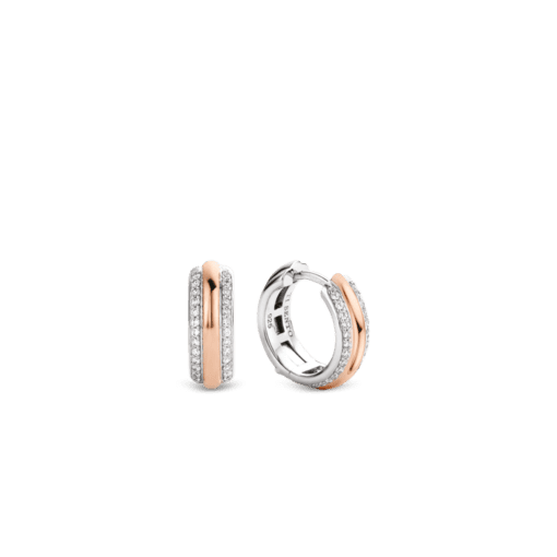 These TI SENTO - Milano rose-gold plated silver hoops are surrounded by white zirconia pavé. Their safety lock ensures that they are always with you.