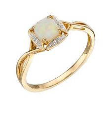 9ct Gold Opal and Diamond Shoulder Twist Ring